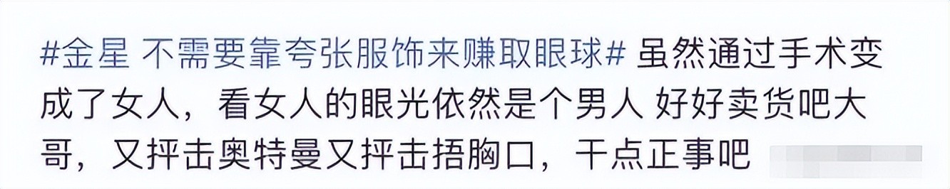这件事情再挑起来之后,很多人也是理解金星为什么要这么说了,还有一部人也是开始调整枪头攻击金星,变性人这个人事情,直接说道男人少管女人的事,有粉丝也是比较理智,找到曾经金星捂着胸口的图片,金星也是怼到大家不懂得教养,粉丝看到惹怒金星马上删除