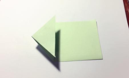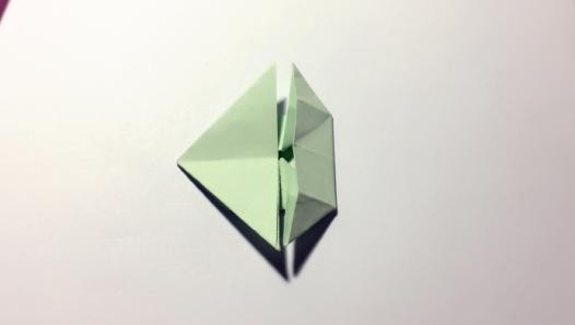 步骤五:下半部分沿中线对折,取角外折,拉开