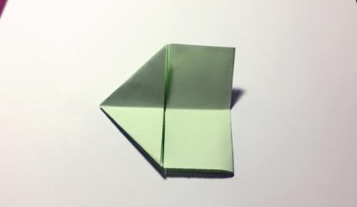 步骤五:下半部分沿中线对折,取角外折,拉开。
