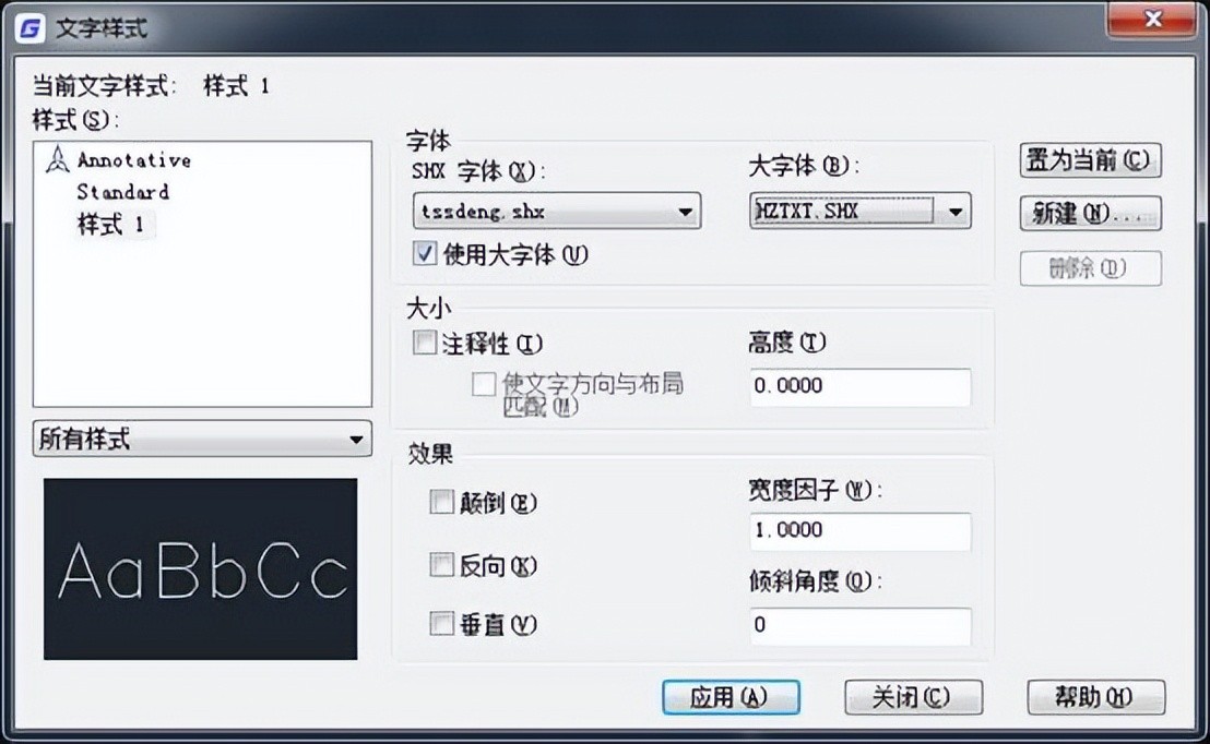 新建一个样式,字体用tssdeng.shx,并将该文字样式置为当前;