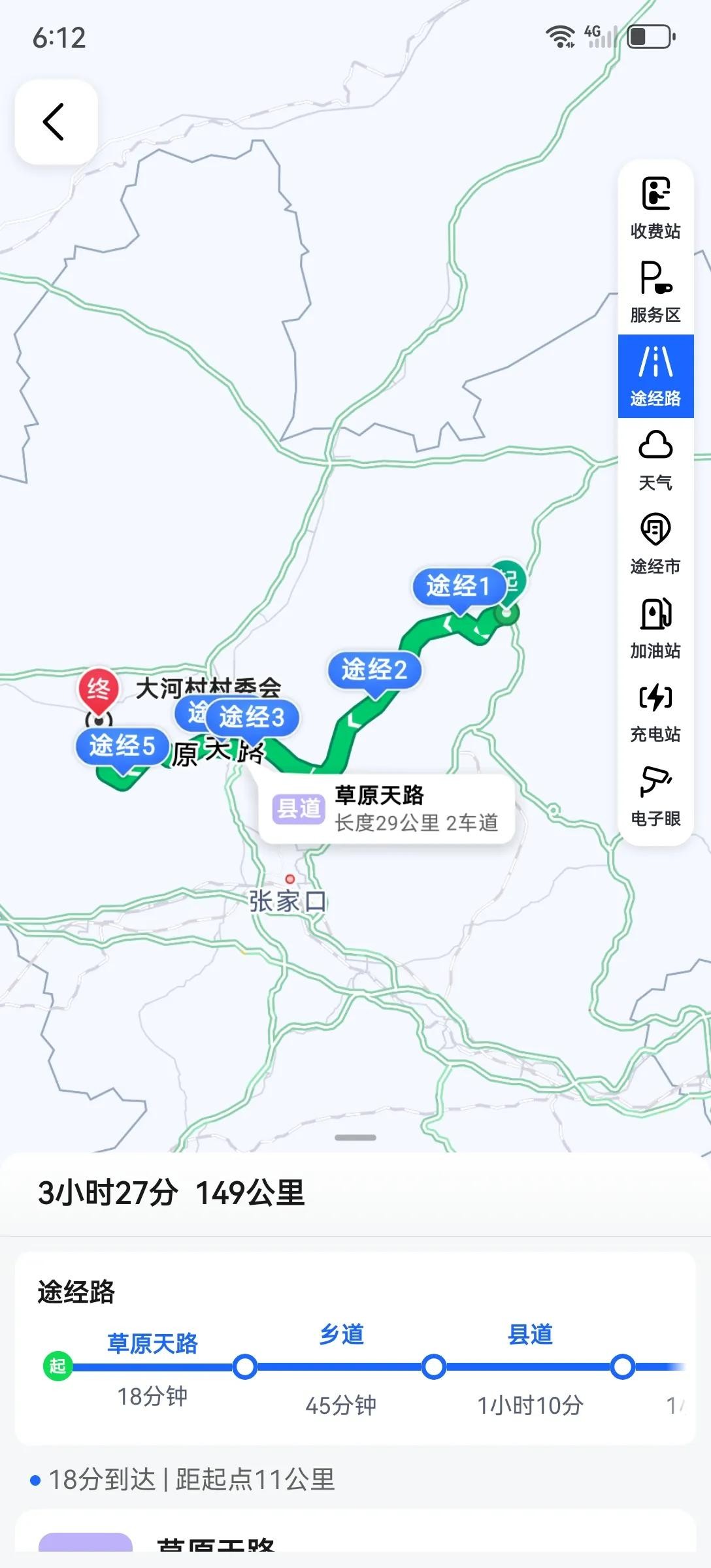 草原天路里面温度不高,偶尔还会下雷阵雨,不需要特别的避暑歇车。如果是开电动汽车,别着急,万一担心电不足,可以到西边的黄花坪充电(实地体会过)。