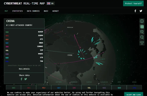 1.卡巴斯基全球网络攻击实时图
