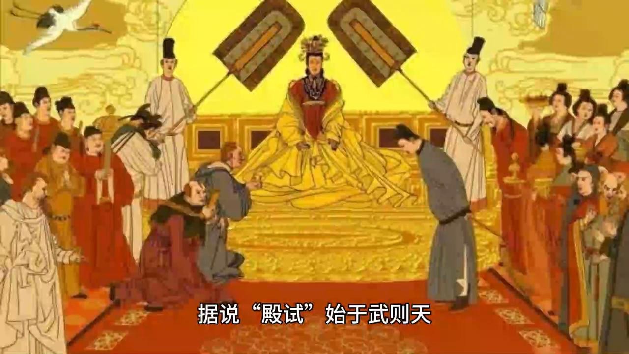"会试"由翰林或内阁大学士主考,礼部负责在贡院举行,也称"春闱",连考三场,每场三天,通过者为"贡士",可参加四月的"殿试,其中头名称为"会元"。"殿试"由皇帝出题主持,按照成绩决定名次。据说"殿试"始于武则天,"殿试"只考对策,一天结束录取名单称为"甲榜"或"金榜"。