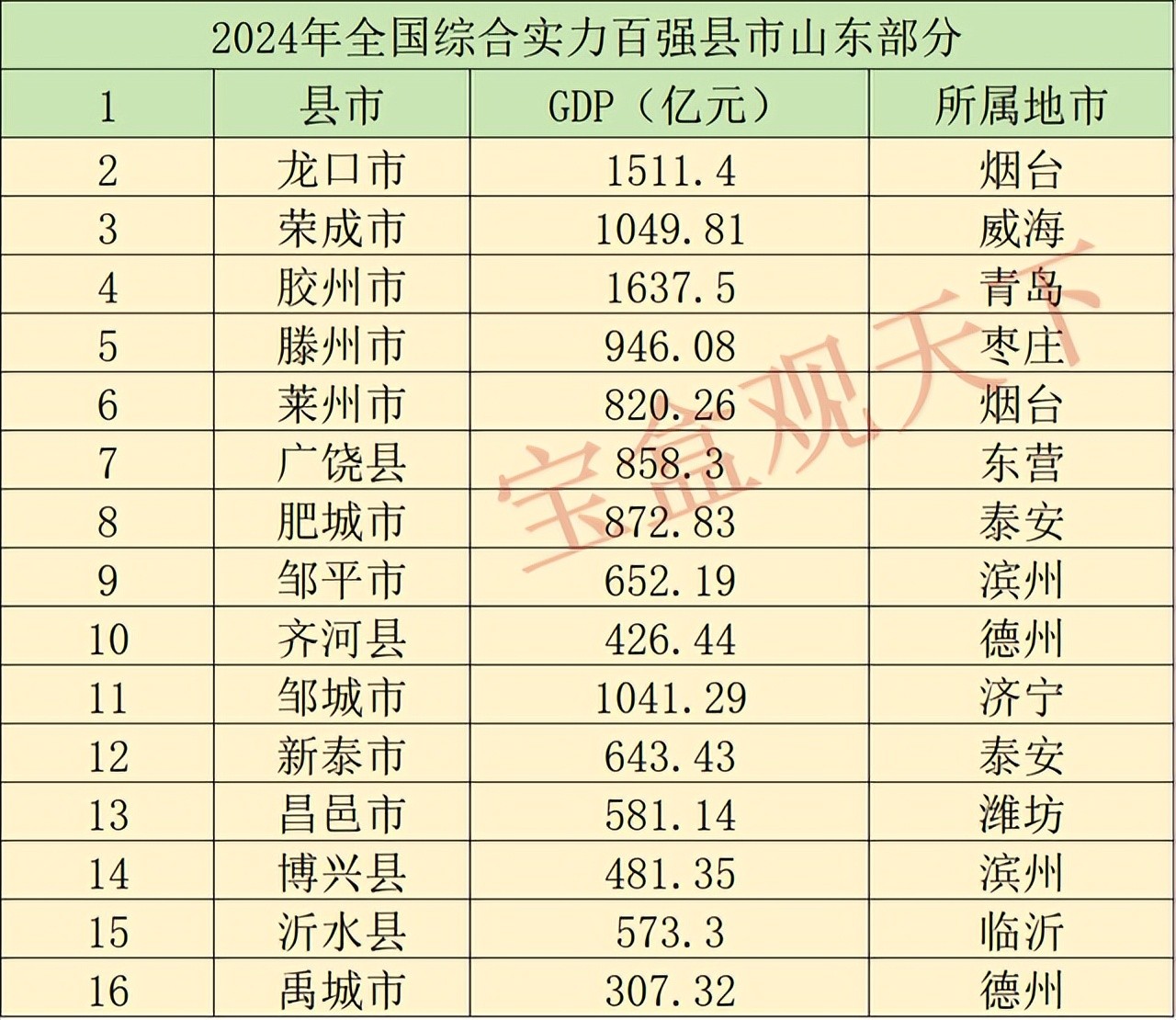 2024山东实力最强的市县排名公布:龙口第1,胶州GDP最高