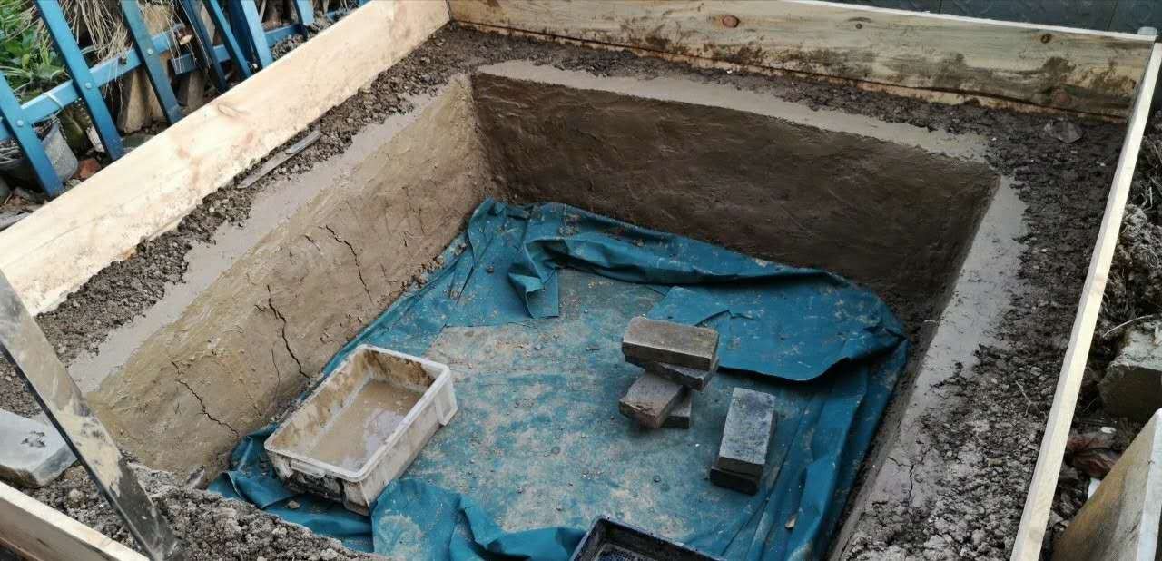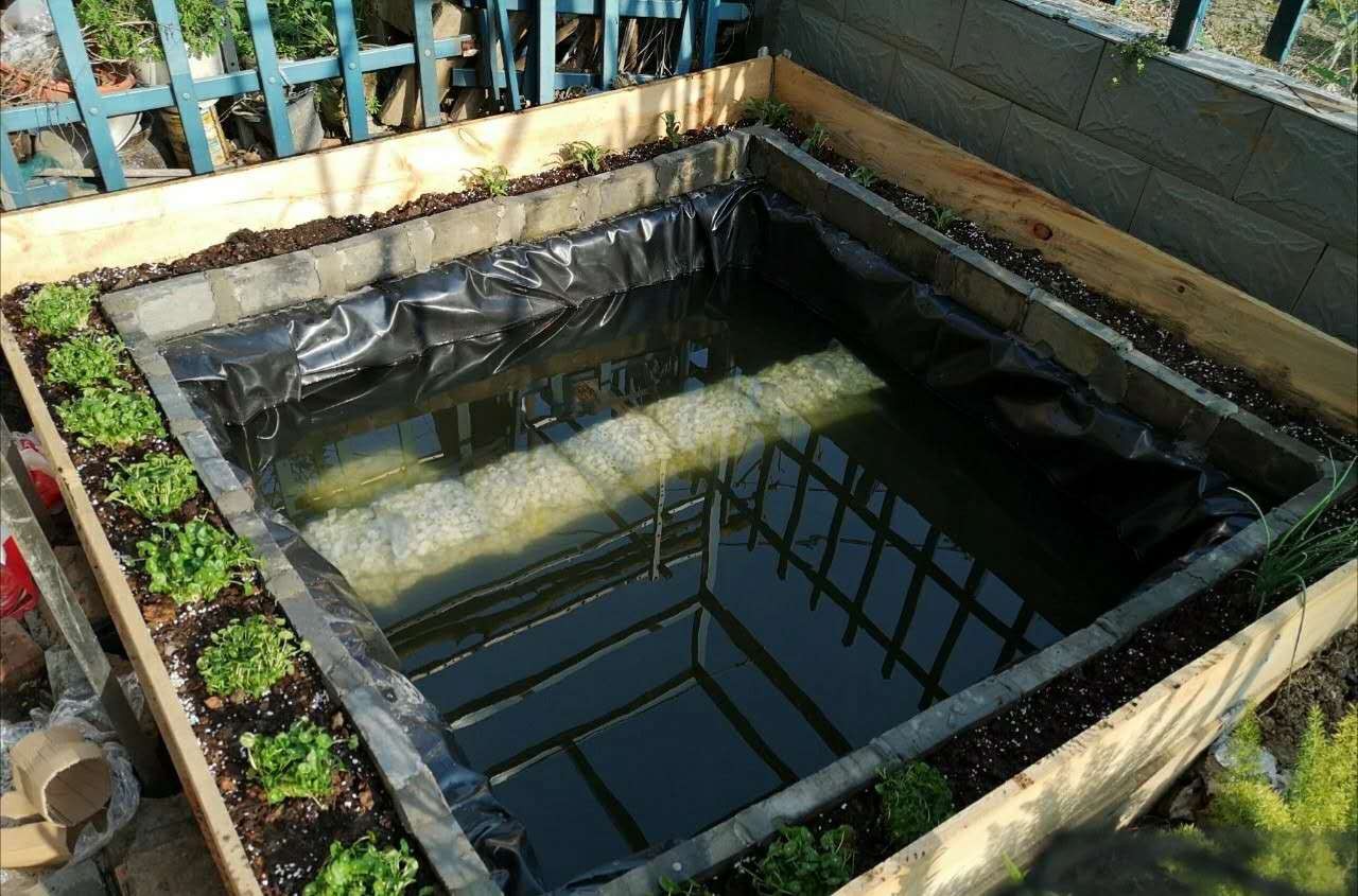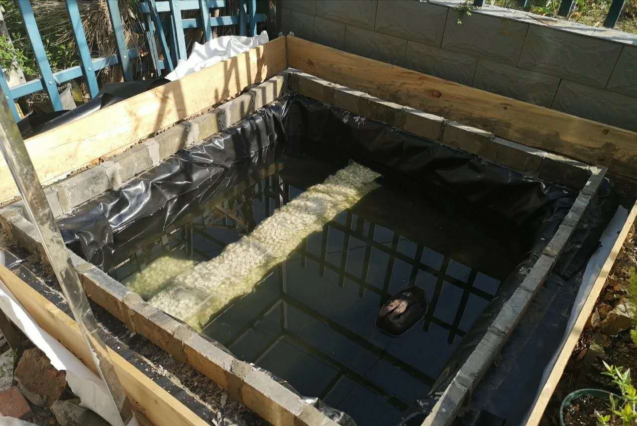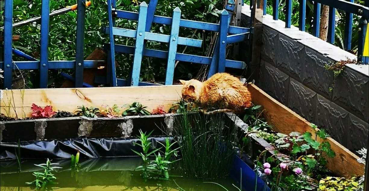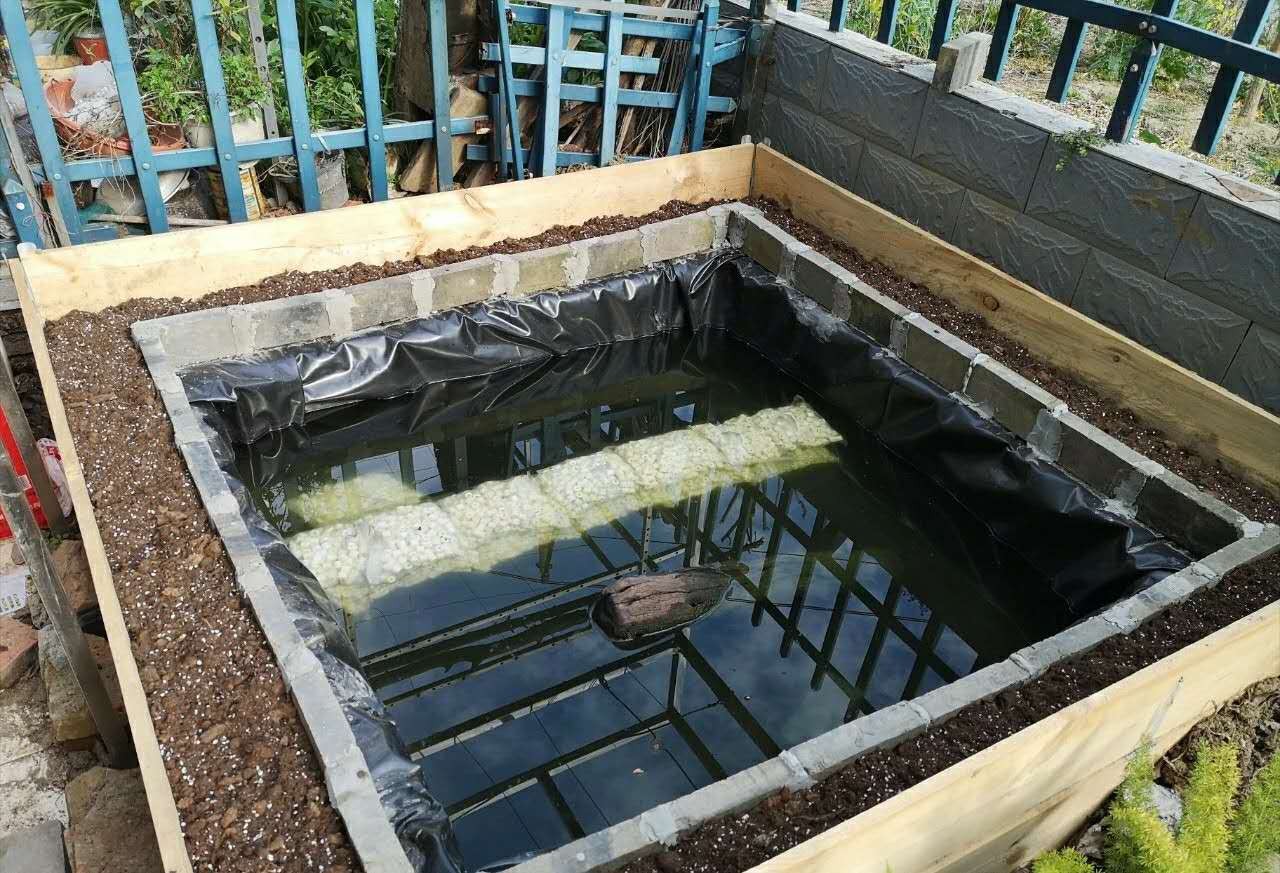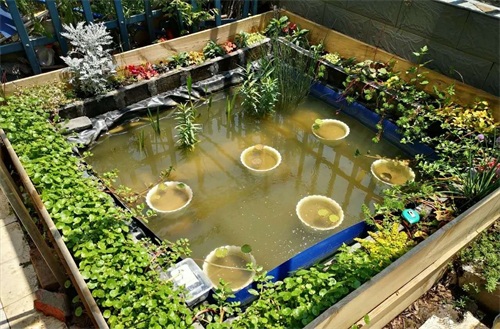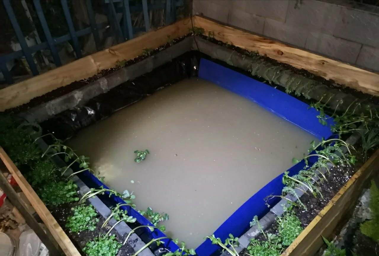 又挖掘土方工程太大,所以此池为增设围栏利用向下挖掘15公分的土抬高池壁。此池建造总成本不超过400块,是十分低廉而普遍的家庭适用性建造方式。