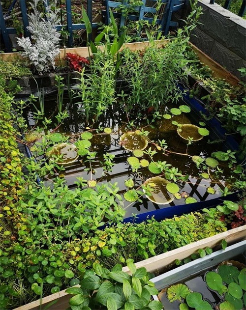 其中鸢尾类长势相对较差,下次我如果再栽植可能会选择沼泽沿岸,不适宜完全浸没在较深的水中。再力花,千屈菜,梭鱼草长势极好,且根据实际情况来看对于水生系统有着不可磨灭的贡献。
