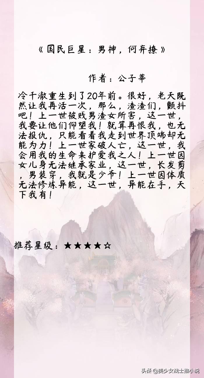 好了今天的小说推荐就到这里啦,以上基本都是情节设计以及人物设定都很亮眼的小说,将你的意见写在评论区喔~