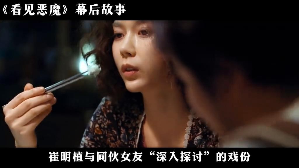 2010年,由崔岷植、李秉宪主演的《看见恶魔》在韩国本土进行了首映。电影中崔岷植为躲避李秉宪的追踪,躲进了同伙住处。在我们看的公映版里有一段崔明植与同伙女友"深入探讨"的戏份,但在首映版里这一段其实并不存在,取而代之的是一段1分30秒崔明植与同伙"煮酒烹人肉"的大尺度情节。