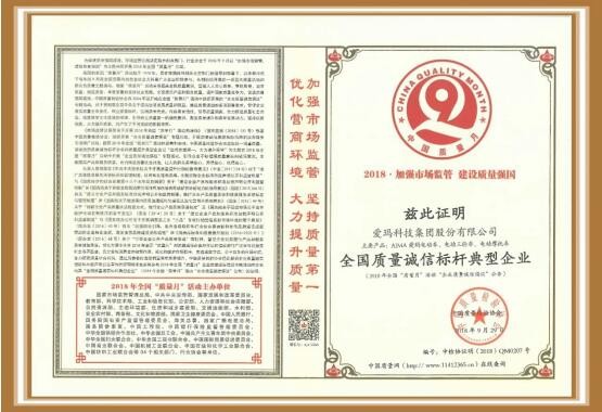 (图注:爱玛科技股份有限公司全国质量诚信标杆典型企业证书)