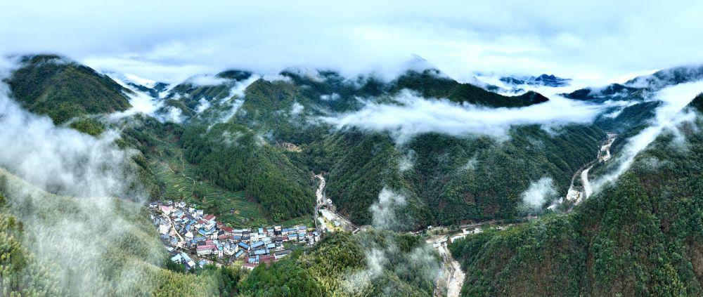 2024 年 1 月 30 日,武夷山国家公园桐木村雨后云雾缭绕(无人机全景照片)。新华社记者 姜克红 摄