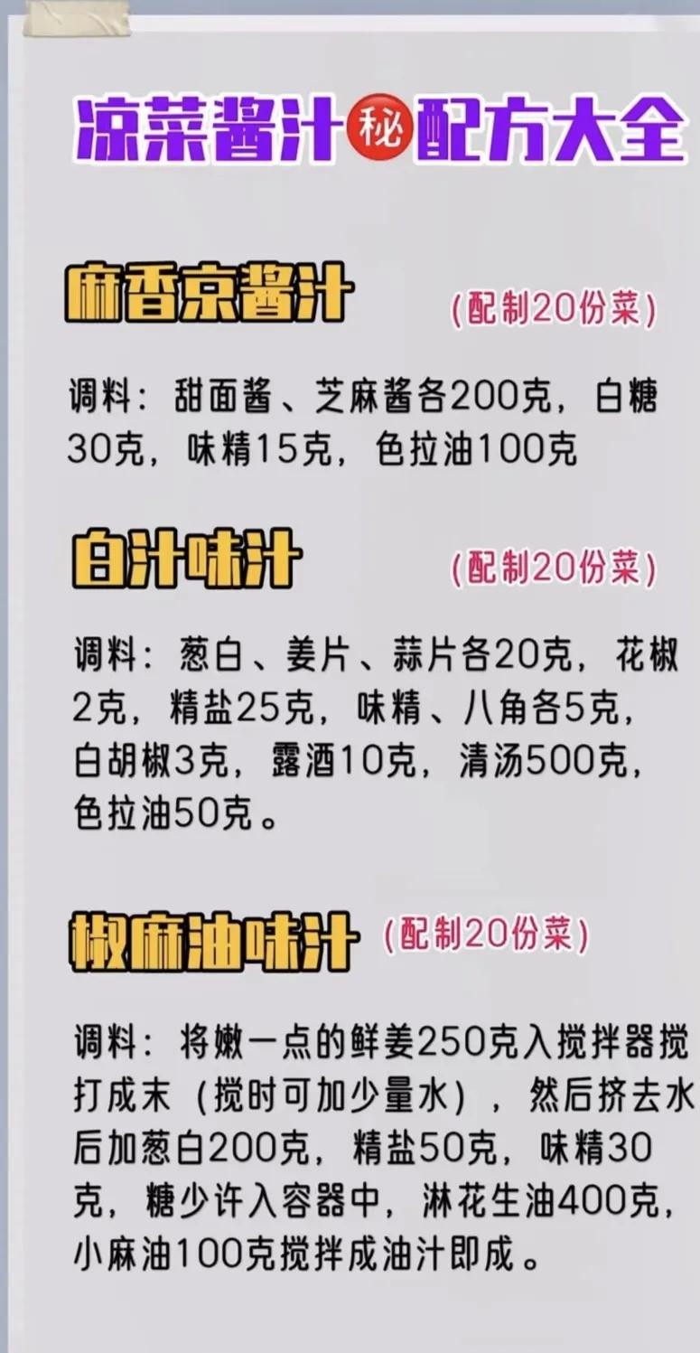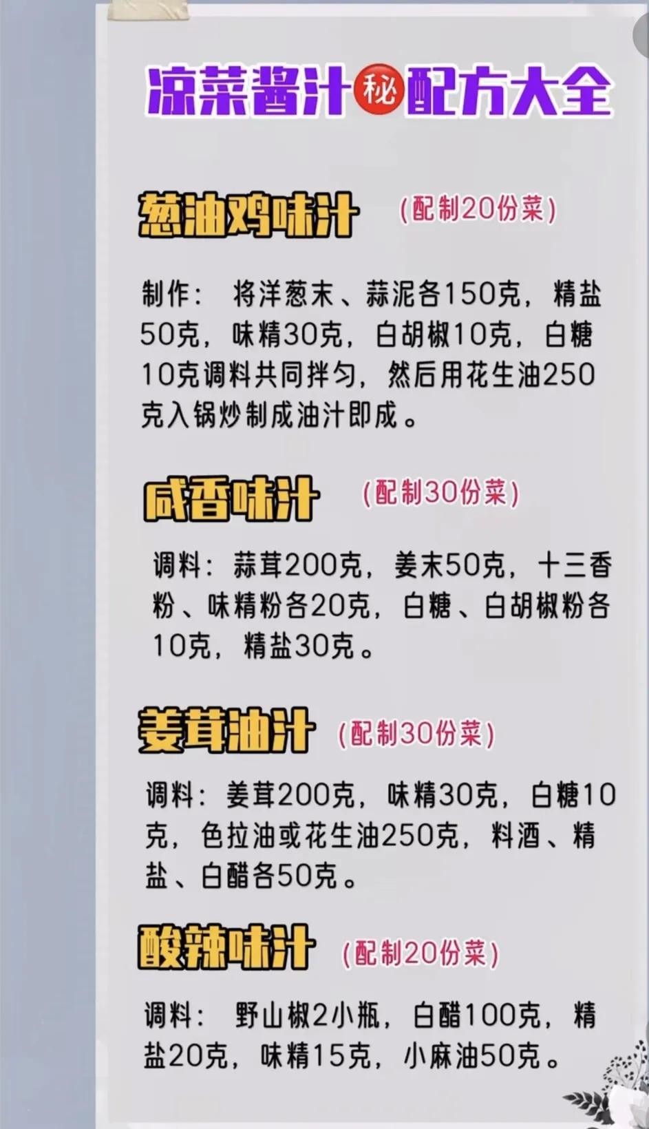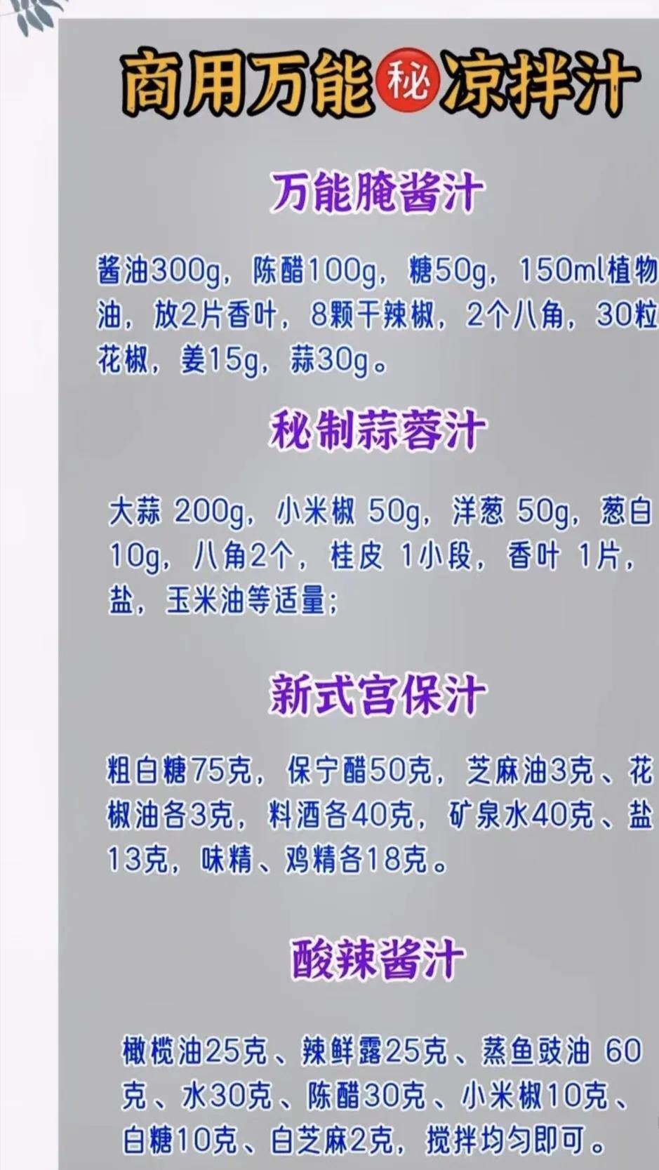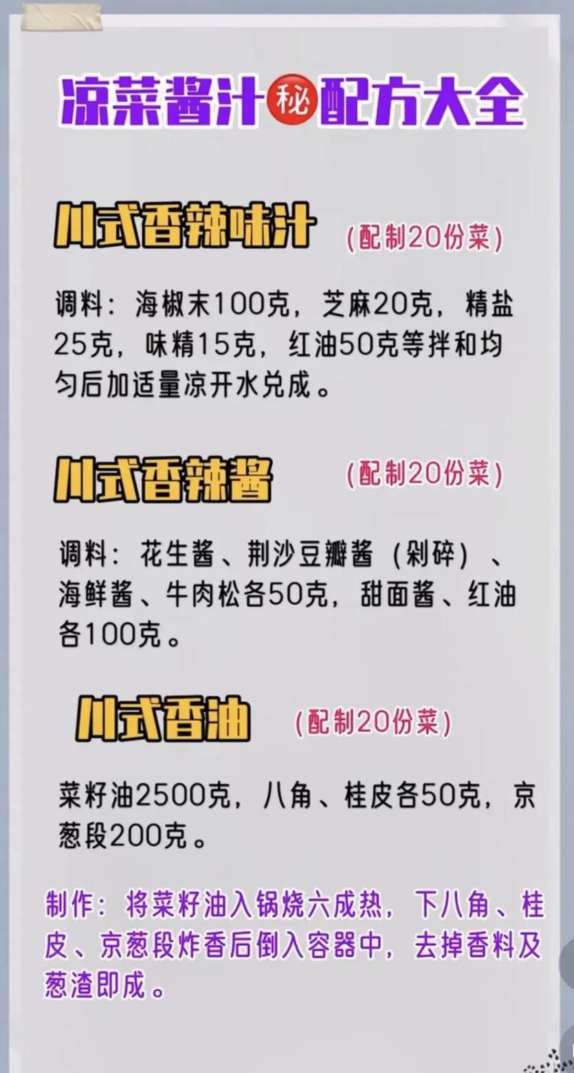 商用万能秘凉拌汁调料配方大全 凉菜调料