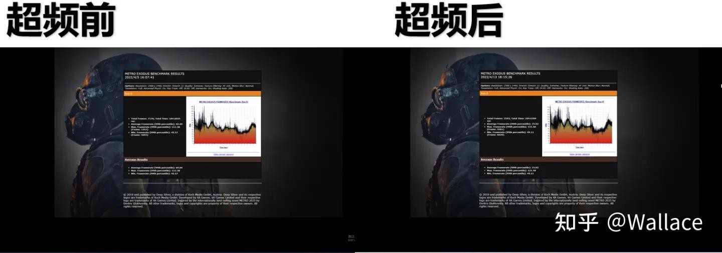 超频前平均帧114,超频后平均帧118,提升3.5%:
