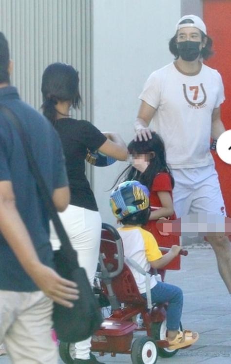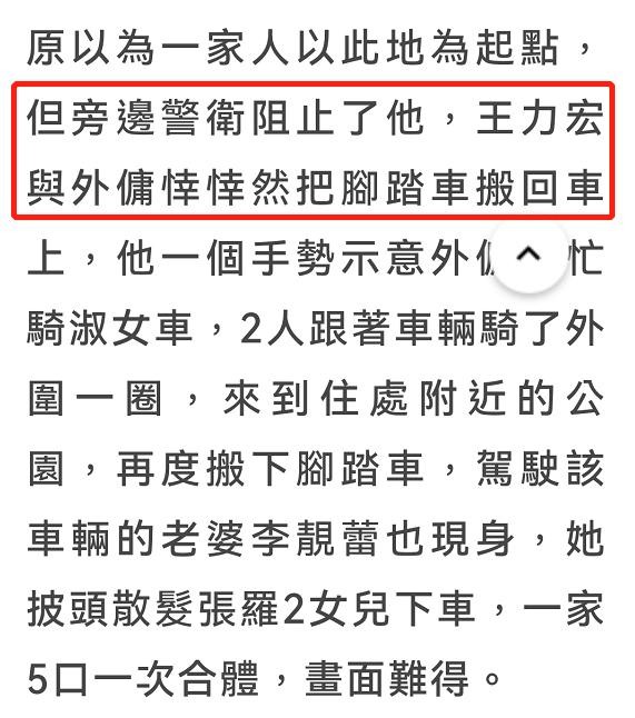 当天,王力宏和妻子李靓蕾带着三个孩子前往家附近的绿地公园兜风。