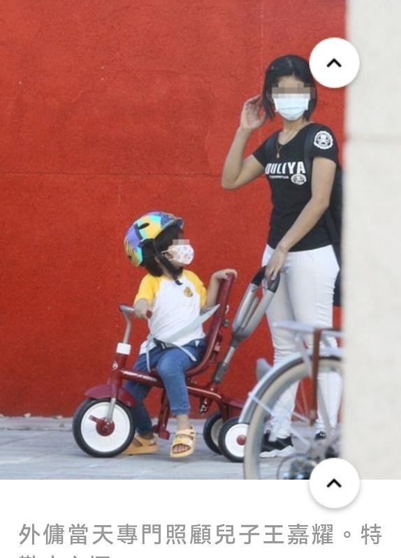 3岁的小儿子王嘉耀则由一位外佣专门照料。