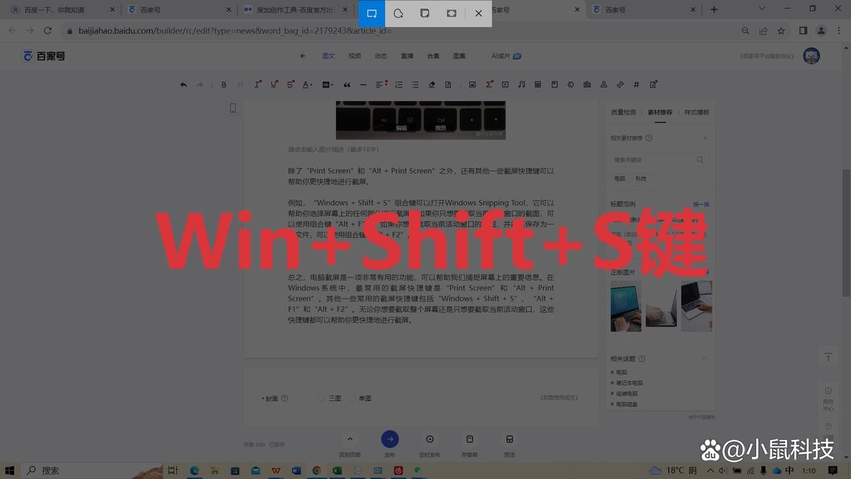 例如,“Windows + Shift + S”组合键可以打开Windows Snipping Tool,它可以帮助你选择屏幕上的任何部分进行截屏。