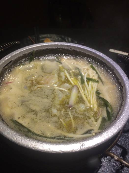 @花事了了_07:把岩石端上桌,然后把鱼和菜都一起倒进岩石锅里。过两分钟就都能吃了。这汤十分好喝!