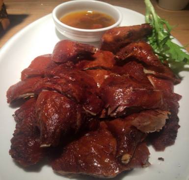 选的是桂林汝谷鸭,每只鸭子不大,配了丰富的香料,用木炭以温和烤熟,皮酥肉嫩汁甜,满口留香,一点也不腻。