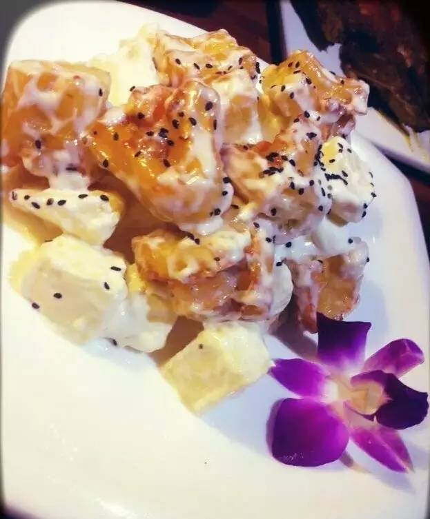 这道油条里嵌着虾仁的菜,竟然吃起来还真不错,油条香,虾仁鲜,菠萝甜,一吃下去就根本就停不下来!