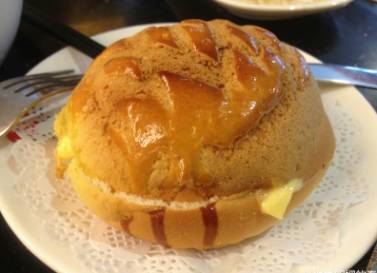 菠萝包温温的很脆很香甜,黄油冰冷有种冰淇淋的感觉,搭配在一起十分好吃。