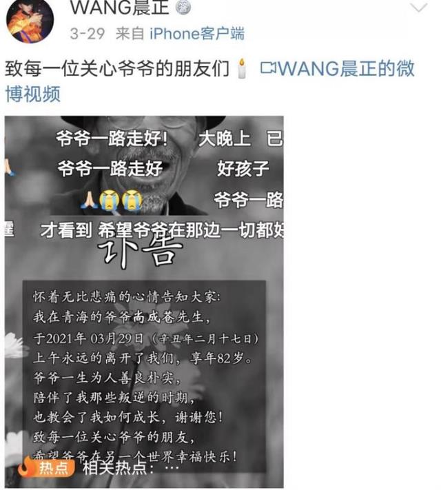 2025年3月29日,王晨正在微博发讣告,向大家通报爷爷去世的消息。