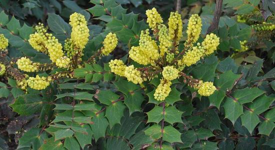 一种常绿的小灌木,叶形奇特,先端有硬尖,边缘有锯齿;花黄绿色,花期很长,可以从9月开至翌年春季。