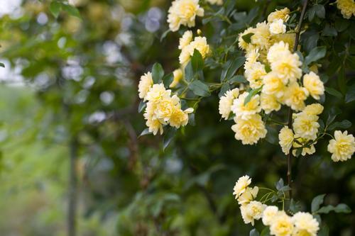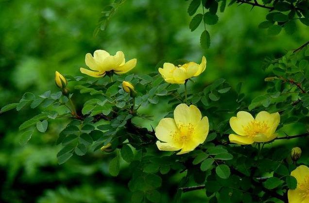 长的像蔷薇,但叶子很小,香气袭人,花枝挺直,花苞饱满,叶片清爽。黄刺玫的花语:希望与你泛起激情的爱。