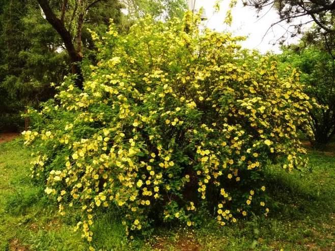 木质藤本,常做廊架的绿化材料。春季开花,黄花灿烂如锦秀,极为美丽。