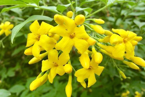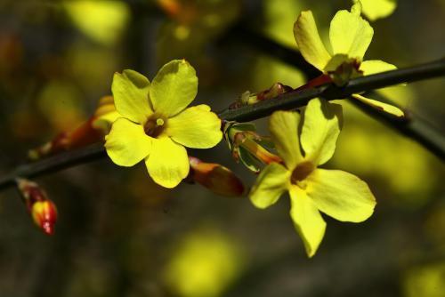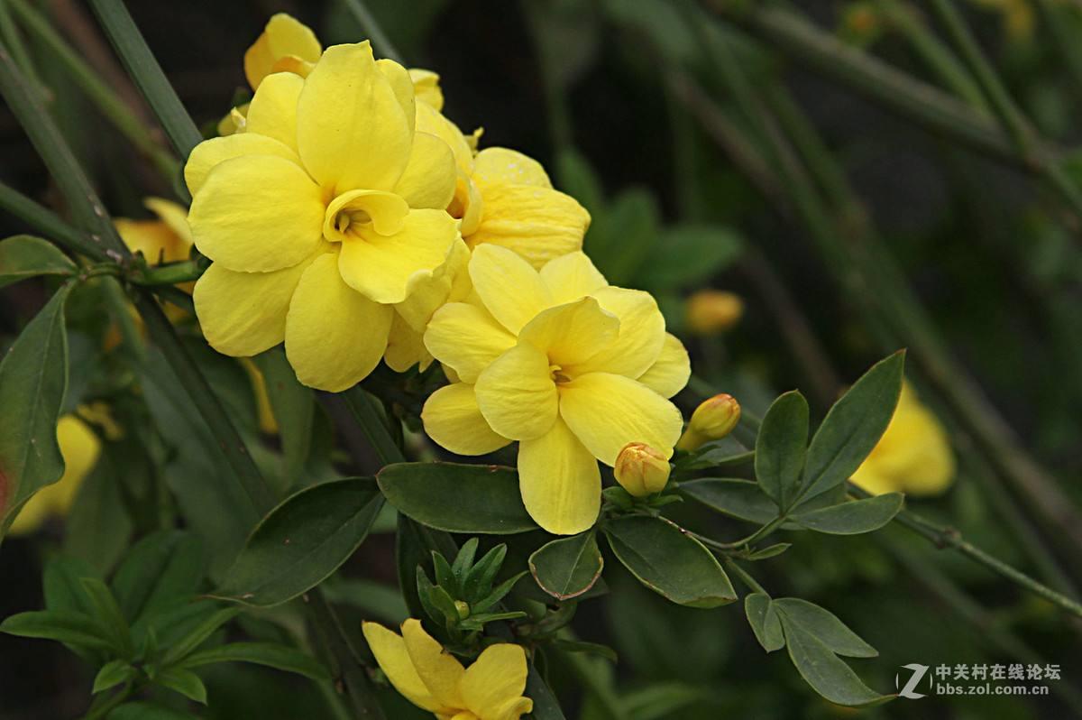 与迎春花非常相似,花期比迎春晚一个月左右,花比迎春大,叶长年绿色。迎春先花后叶,开花时没有叶子哟。
