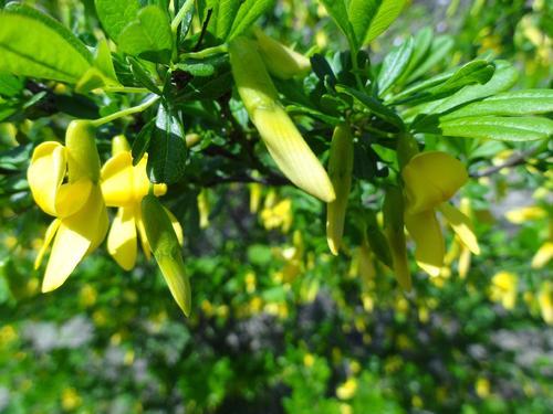 锦鸡儿花朵鲜艳,状如蝴蝶的花蕾,盛开时呈现黄红色,展开的花瓣状如金雀,极为美丽。