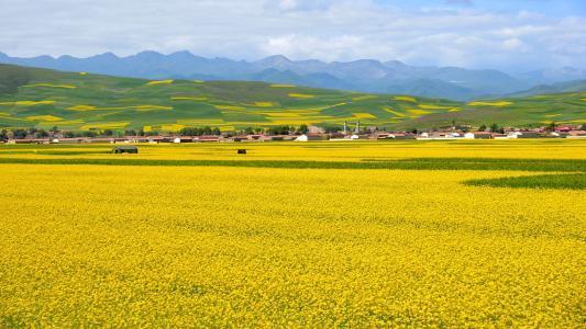 油菜花小小的,一朵看起来并不起眼,可是一旦大片种植,就形成了一幅壮丽的画卷,在与那嫩绿的水稻相邻,一片生机勃勃。