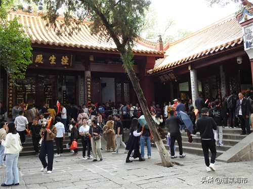 观察了一下那些烧香祈福的人,发现他们手里的香烛并没有在圣帝殿前点燃,而是在行过祭拜大礼之后,直接送到了两座焚帛炉里。如此一来,这焚帛炉还真得叫香炉才是。将香烛集中到一起焚烧,既安全又实现了一定程度的环保,是非常好的做法,应该加以推广。