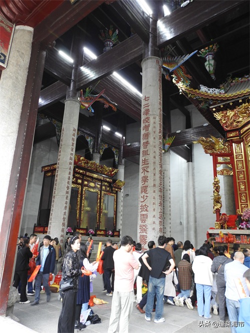 据介绍,圣帝殿内外共有72根柱子,象征着衡山有72座山峰。在1920年前,这些柱子都是木质的,后来被陆续更换为石柱。殿内的16根石柱身上都刻有铭文,记录了捐赠这些石柱者的姓名,譬如:时任湖南陆军第四师师长唐生智、粤军副总指挥、洪威将军洪兆麟、湖南榷运总局局长江寯,还有前文提到的那位刘重威团长。除此之外,还有一些是有钱的大户人家以全家人的名义捐赠的,好几辈人的名字都刻上了。当年制作、运输、安装一根这样的石柱差不多需要花费520块大洋,这在当时绝对是一笔巨款,而江寯总局长一人就独捐了两根,看来这负责盐运的差事在哪朝哪代都是个肥差。