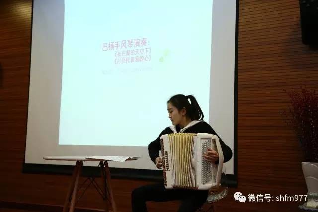 俄罗斯有著名的巴扬手风琴,上海音乐学院尹异文同学身着黑色毛衣与白色巴扬手风琴形成鲜明对照,她演奏了《在巴黎的天空下》,人们的耳眫仿佛流淌着塞纳河水;《月亮代表我的心》由手风琴来体现,在变奏中别有一番滋味在心头,忧伤和留恋一言难尽。