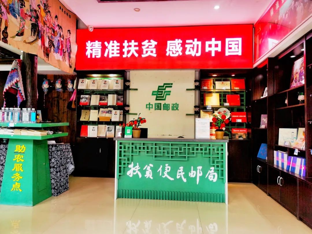 在十八洞村主题邮局游客们可以小憩片刻给远方的亲朋好友寄一张明信片分享十八洞村的美丽风景、动人故事还能购买村里地道的苗家腊肉、蜂蜜、苗绣等农特产品直接邮寄回家