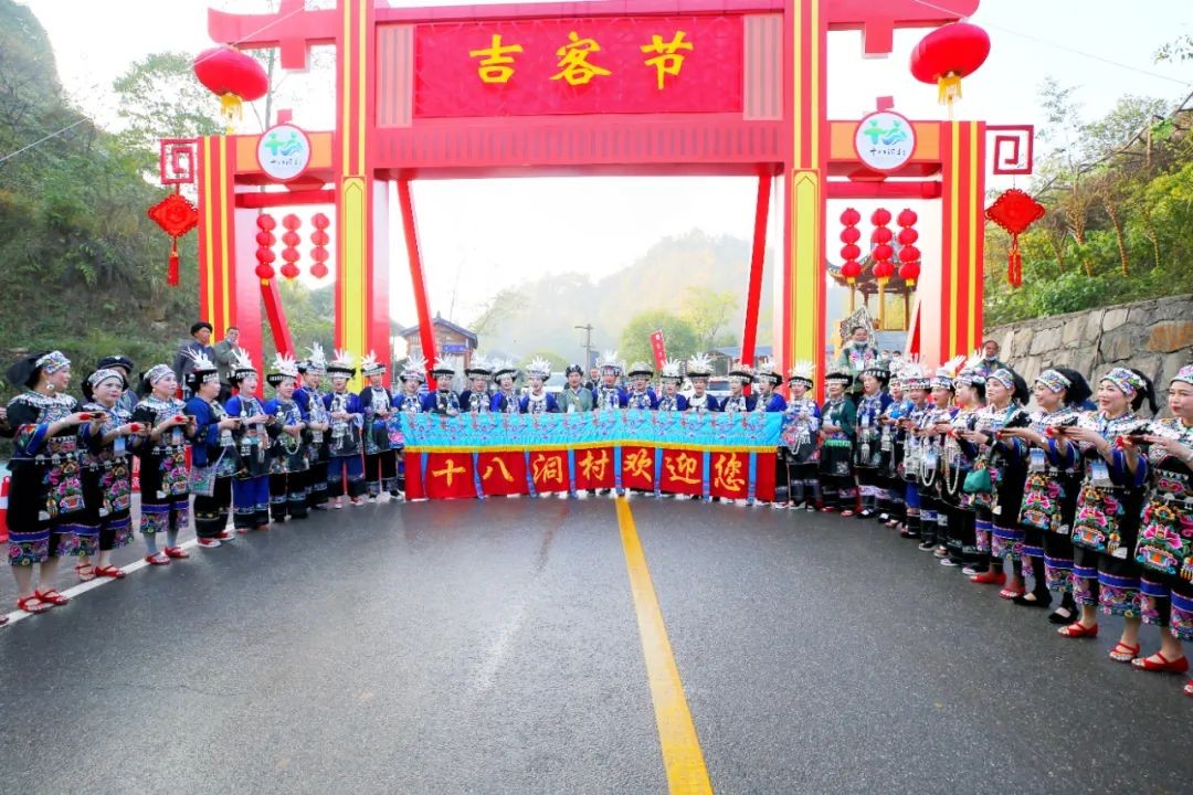 “吉客”在苗语里是“感恩、感谢、吉祥如意”之意吉客节是一个起于民间、顺应民意的“感恩之节”在这一天当地多个民族齐聚十八洞村用飘舞的彩旗和欢腾的鼓乐来表达对美好生活的热爱和感恩之情