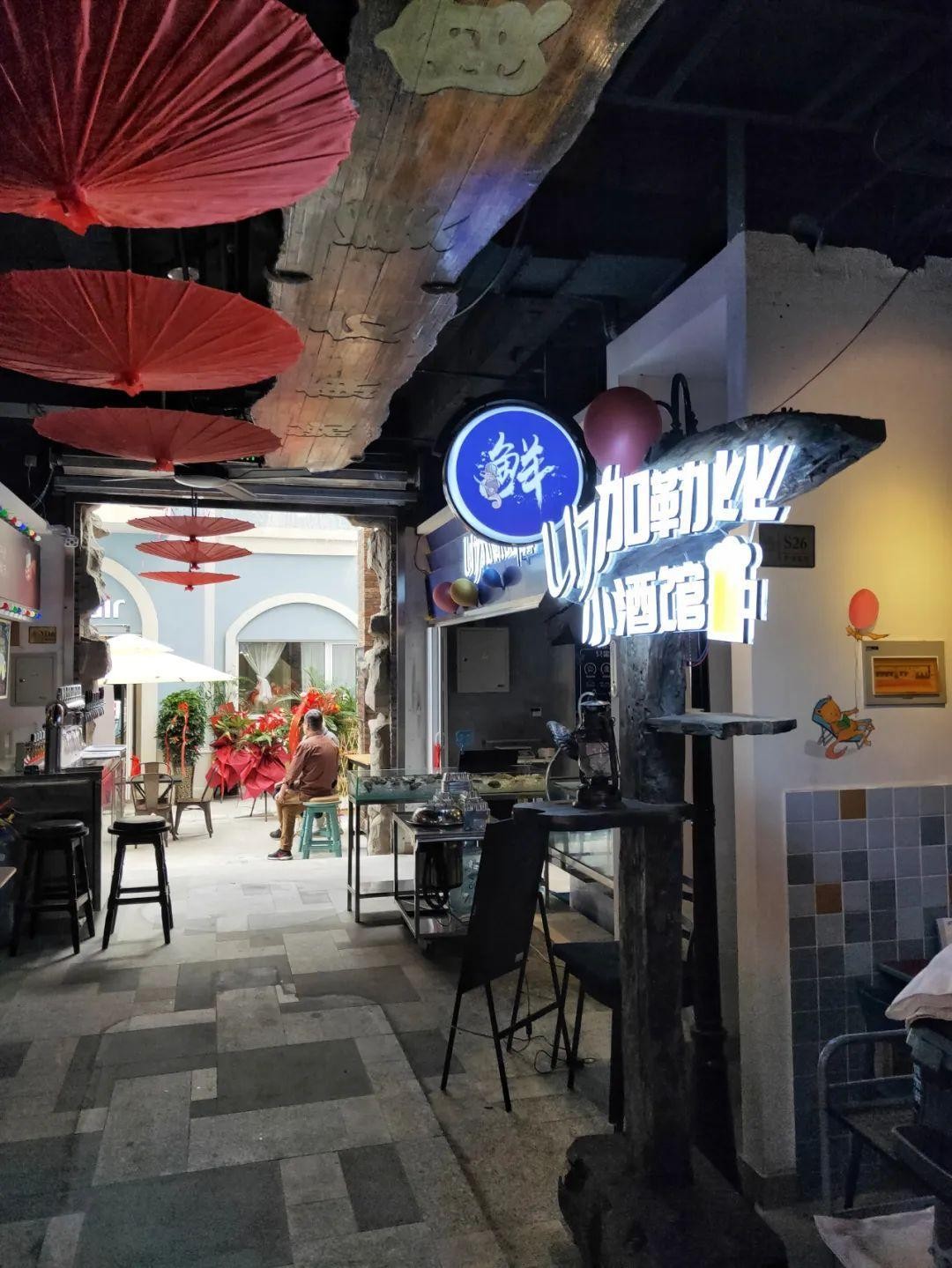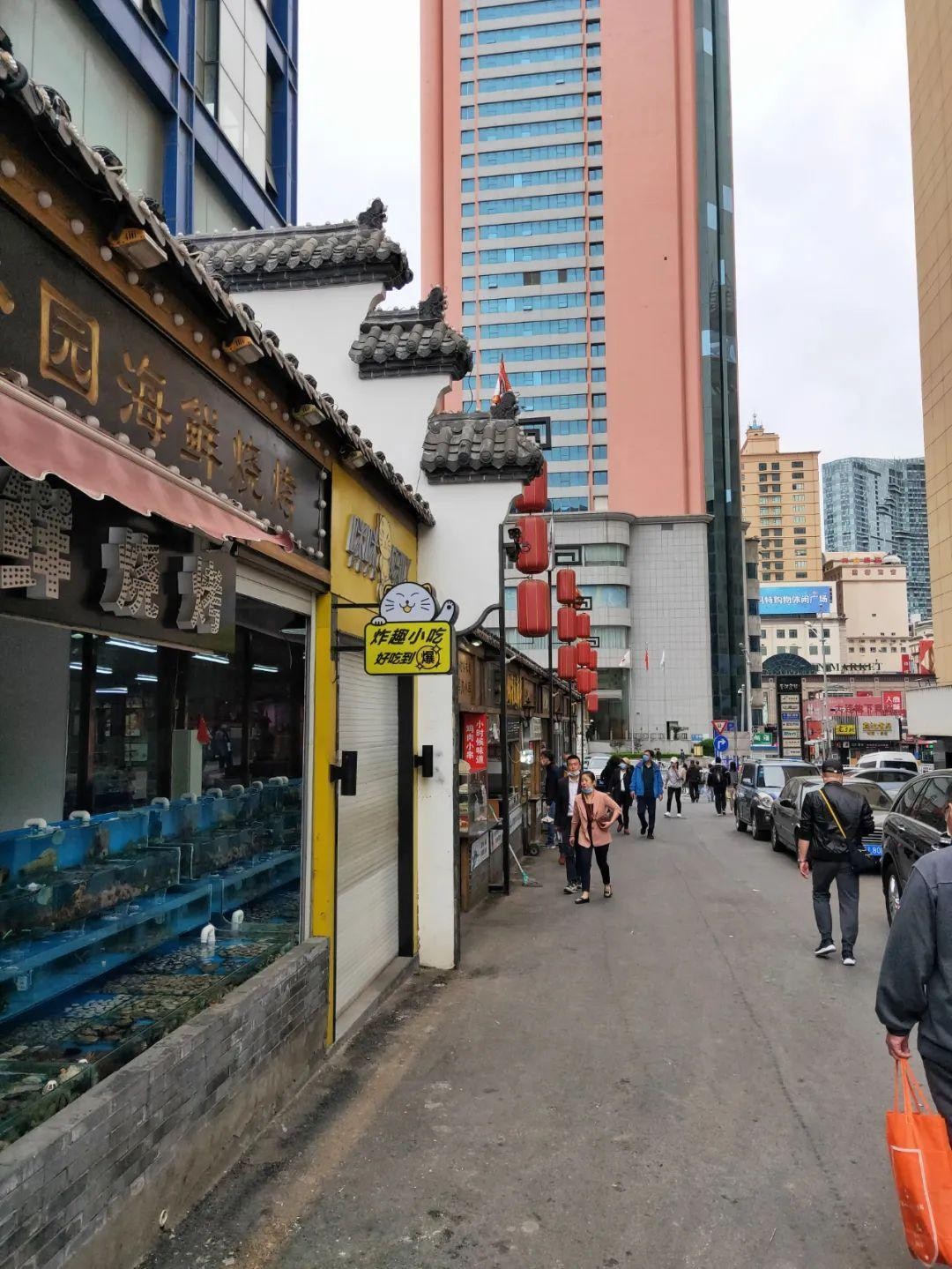 这里是大连第一个网红小吃街,长100米左右,一家挨着一家特色小吃,每个小店都精心设计,离港湾集市很近,沿着港湾街10分钟左右就到了。