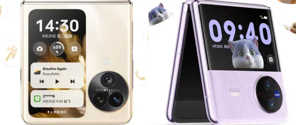 OPPO Find N3 Flip(左)和 vivo X Flip(右)的矩形外屏设计