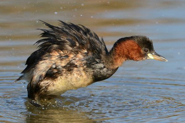 小鸊鷉是一种小型潜鸟,体长仅为25-29厘米安排,没有过翼展最多可达45厘米,浑身长有乌褐色的羽毛,腹部和尾部则浮现白灰色,最大的特性即是脸部和脖子处为明显的红褐色,时常三五成群的在水中泅水,十分长于潜水,然而简直无法遨游。