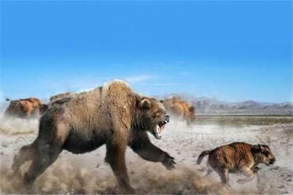短面熊是史前十大恐惧巨兽之一,它还喊干巨型熊齿兽、噬牛熊,从名字中便不妨了解短面熊的食物经常是比拟宏大的动物,例如野牛等等。短面熊重要的生计休憩地是位于北美洲和南美洲的大陆地戴,属于格外强横猛烈的肉食性的动物。短面熊固然体积宏大,瞅起来格外粗蠢。然而是它们行走和奔走起来的速度是格外之快的,它们很少本人去逮食,而是去掠取食物。