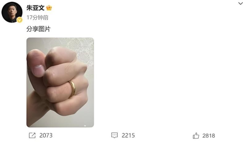 工作人员在多个媒体面前明确回应:“没有离婚,完全是谣言。”而朱亚文本人也通过个人社交账号发布了一张照片,照片中他左手握拳,婚戒清晰可见。