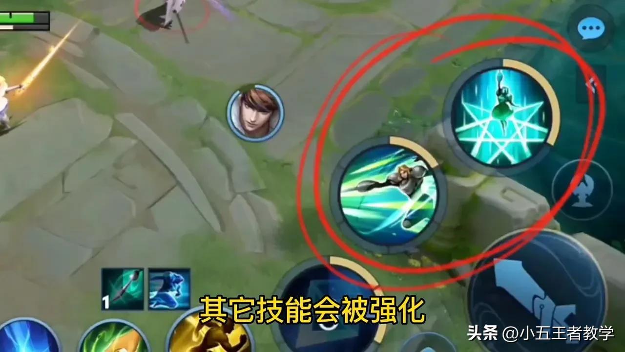 对线时,我们可以利用小兵、河道蟹以及边路的赤甲,提前点5层被动。对拼时先用强化普攻进行追击,再接大招,打出控制,立刻就能解锁第二次强化普攻。